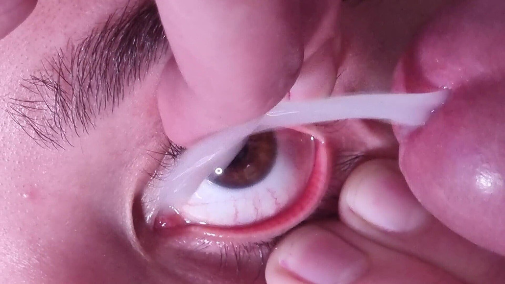 Dressed cum dumpster so desperate for cum constantly keeps her eye open as wide as she can with her fingers, while getting filmed and the camera focused only on her eye, repeatedly talking and begging for cum in her eye until she receives cum in her held open eye in the end.